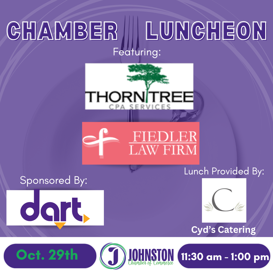 Join us for our October Chamber of Commerce luncheon featuring a discussion on tax planning strategies, financial reporting requirements and legal considerations for businesses.